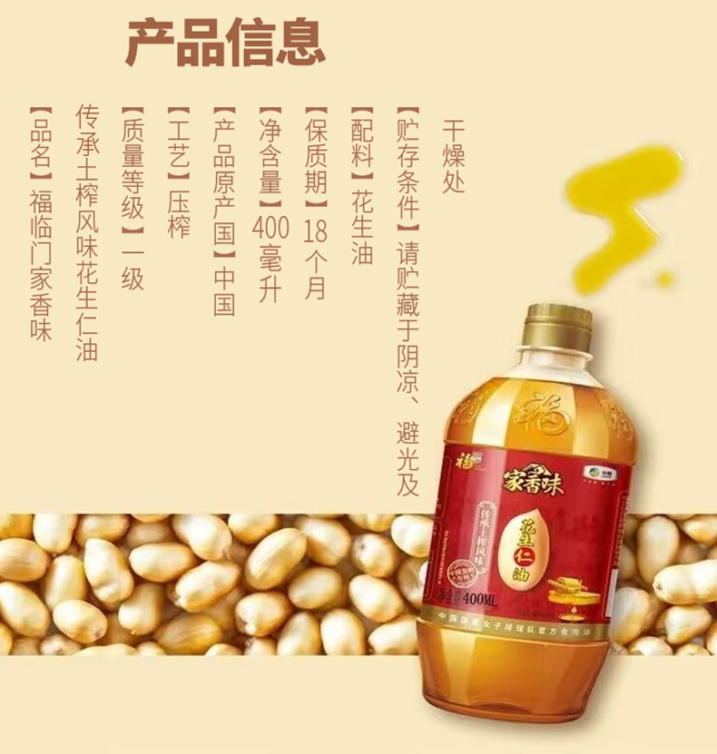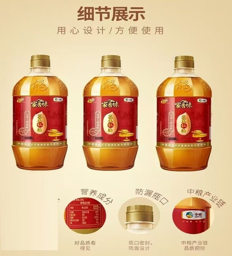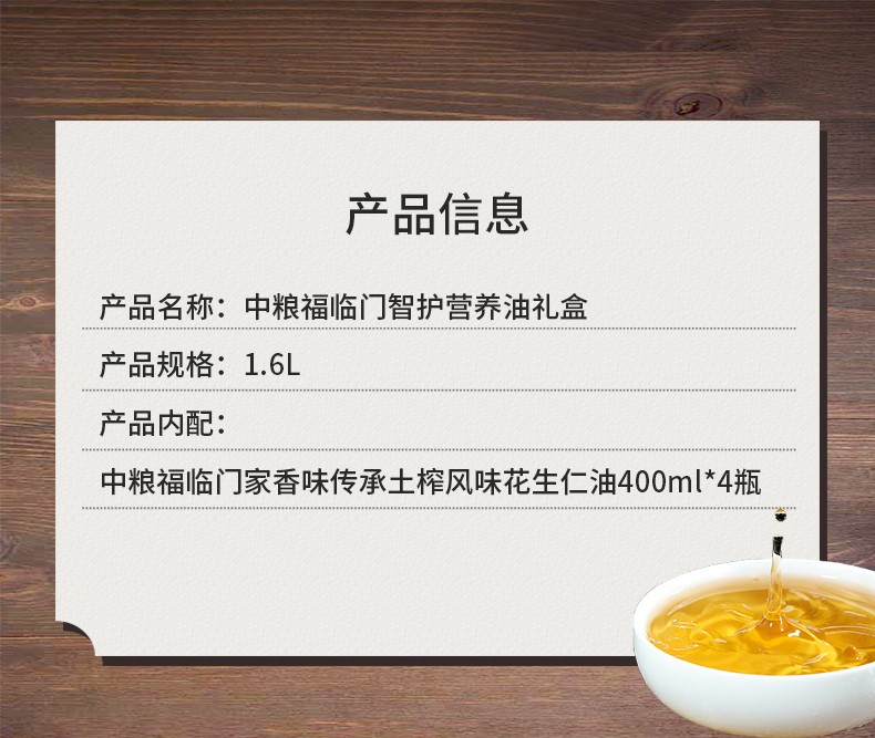 中粮福临门智护营养花生仁油礼盒400ml*4瓶