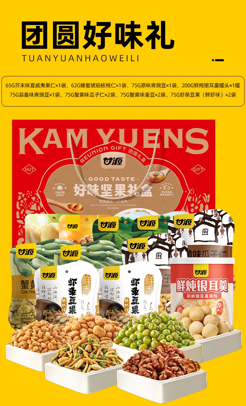 首页 > 坚果糕点休食 > 甘源坚果礼盒 > 甘源927G团圆好味礼坚果礼盒