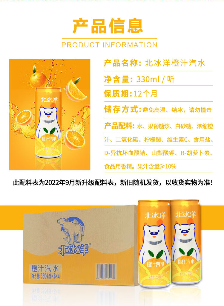 北冰洋听装橙汁汽水330ml*24听