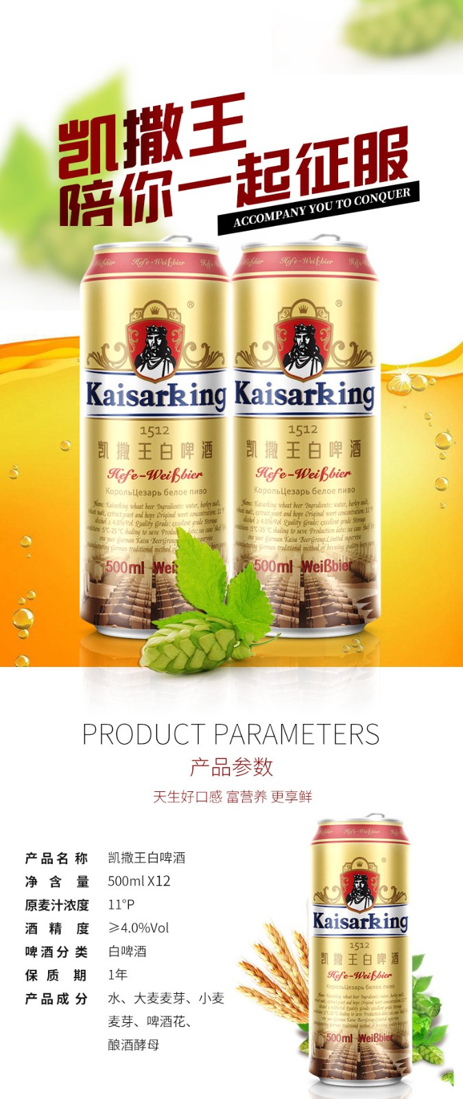 • 系 列:凯撒王原浆精酿啤酒