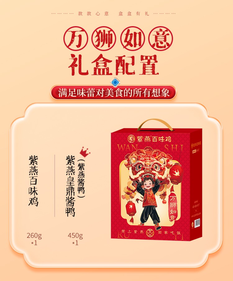 首页 > 坚果糕点休食 > 紫燕百味鸡休食礼盒 > 紫燕百味鸡 万狮如意 710g