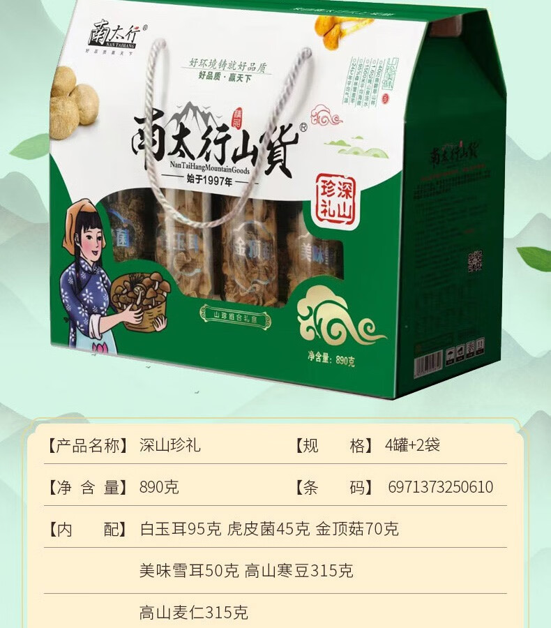 首页 > 粮油调味干货 > 南太行山人行菌菇礼盒 > 南太行·深山珍礼菌菇礼盒890g
