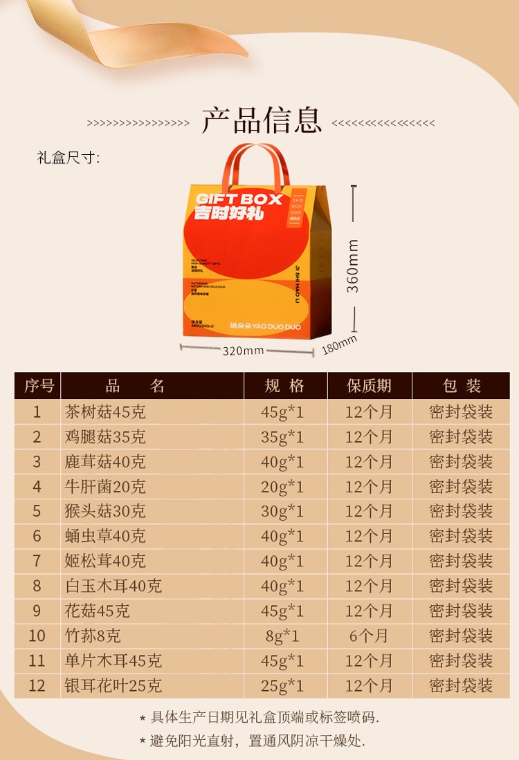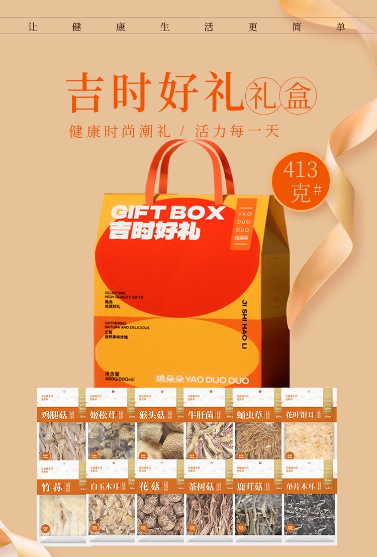 首页 > 粮油调味干货 > 姚朵朵山菌杂粮礼盒 > 姚朵朵-吉时好礼礼盒413克