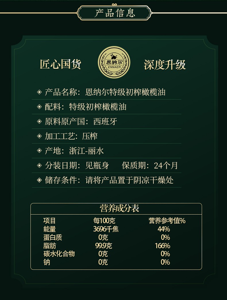 恩纳尔特级初榨橄榄油礼盒装500ml*2