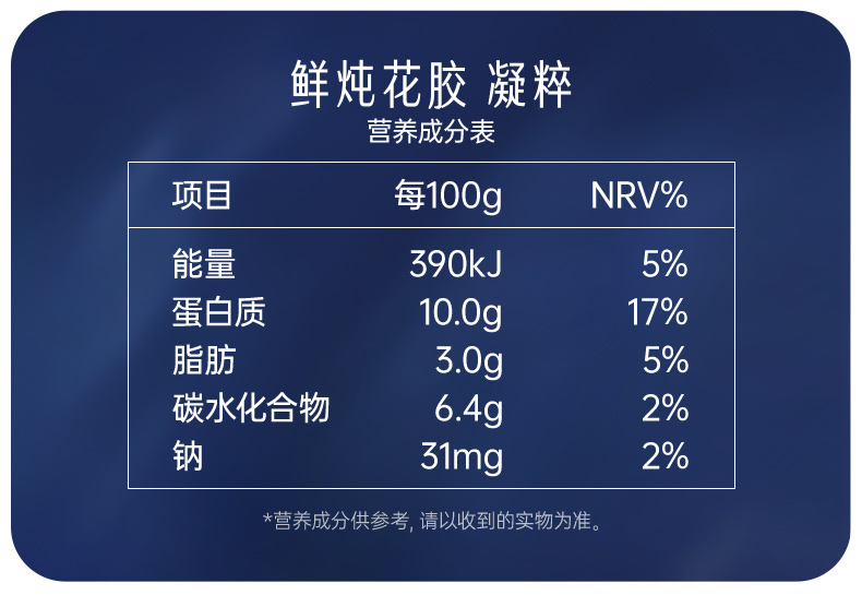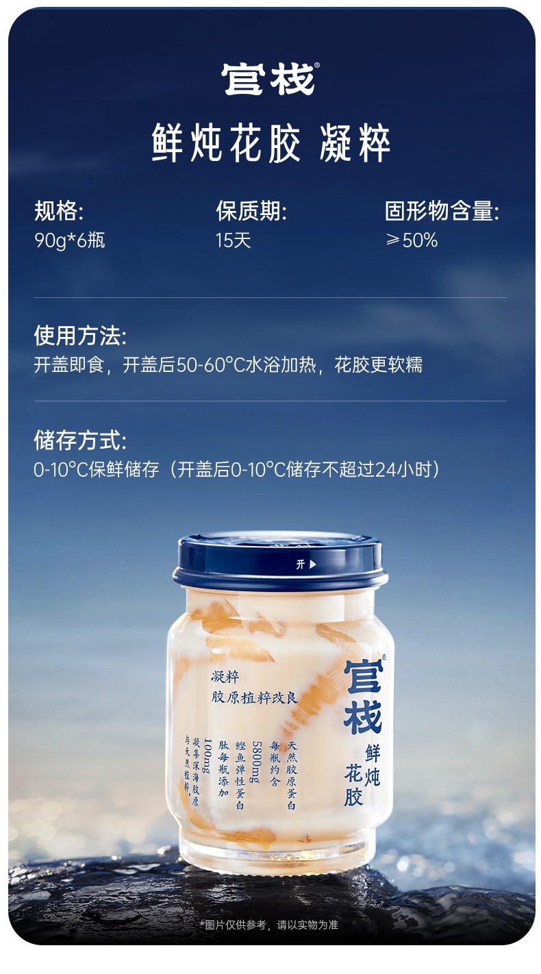 首页 > 滋补营养系列 > 官栈 > 官栈 凝萃鲜炖花胶潘虎礼盒90g*6