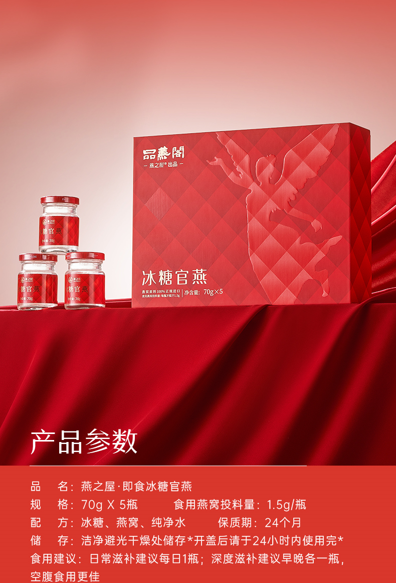 首页 > 滋补营养系列 > 燕之屋 > 明星系列冰糖官燕70g*5