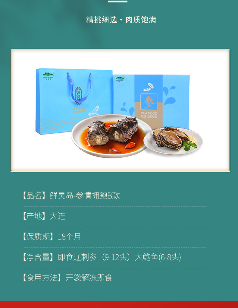 首页 > 滋补营养系列 > 鲜灵岛 > 鲜灵岛 参情拥鲍B款