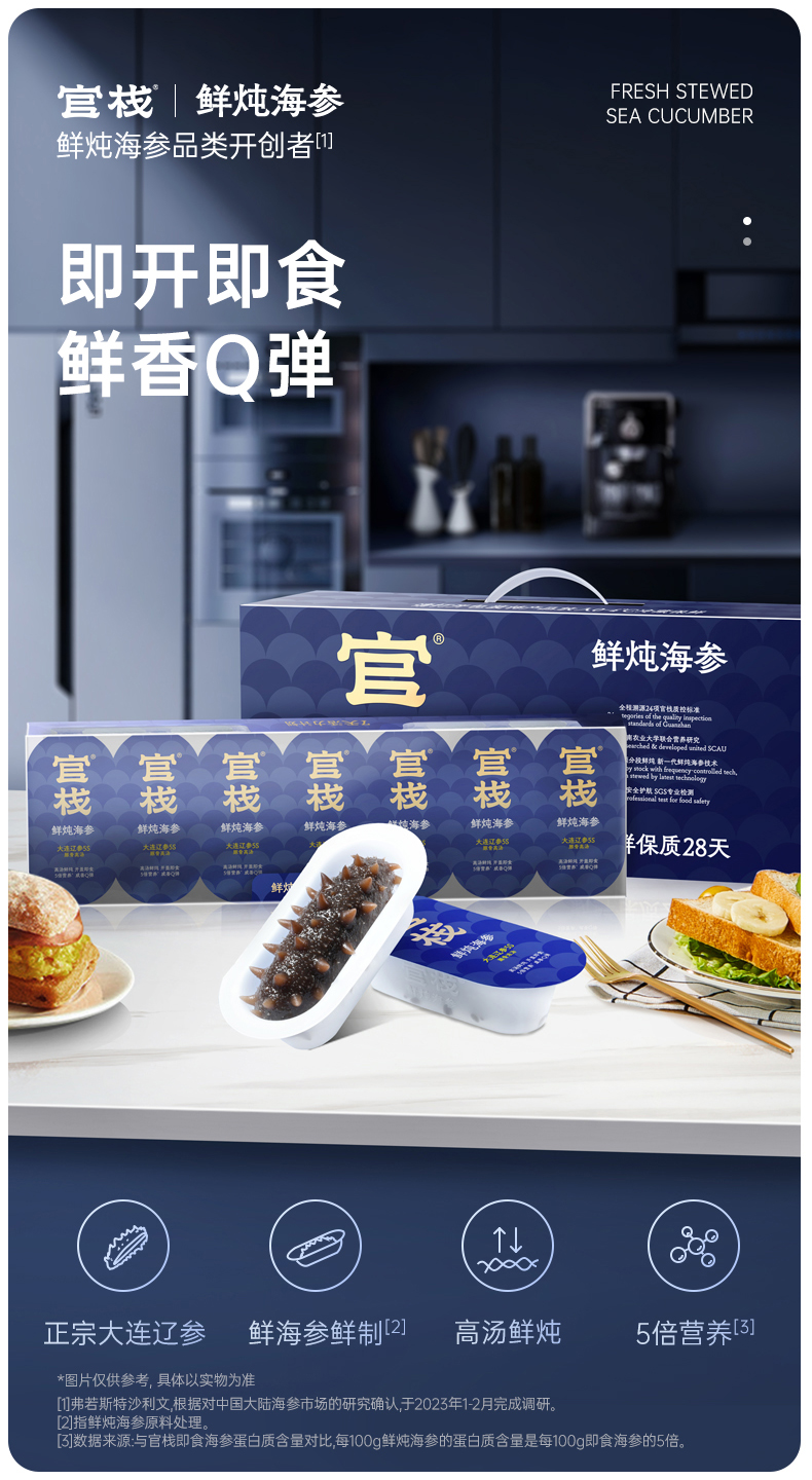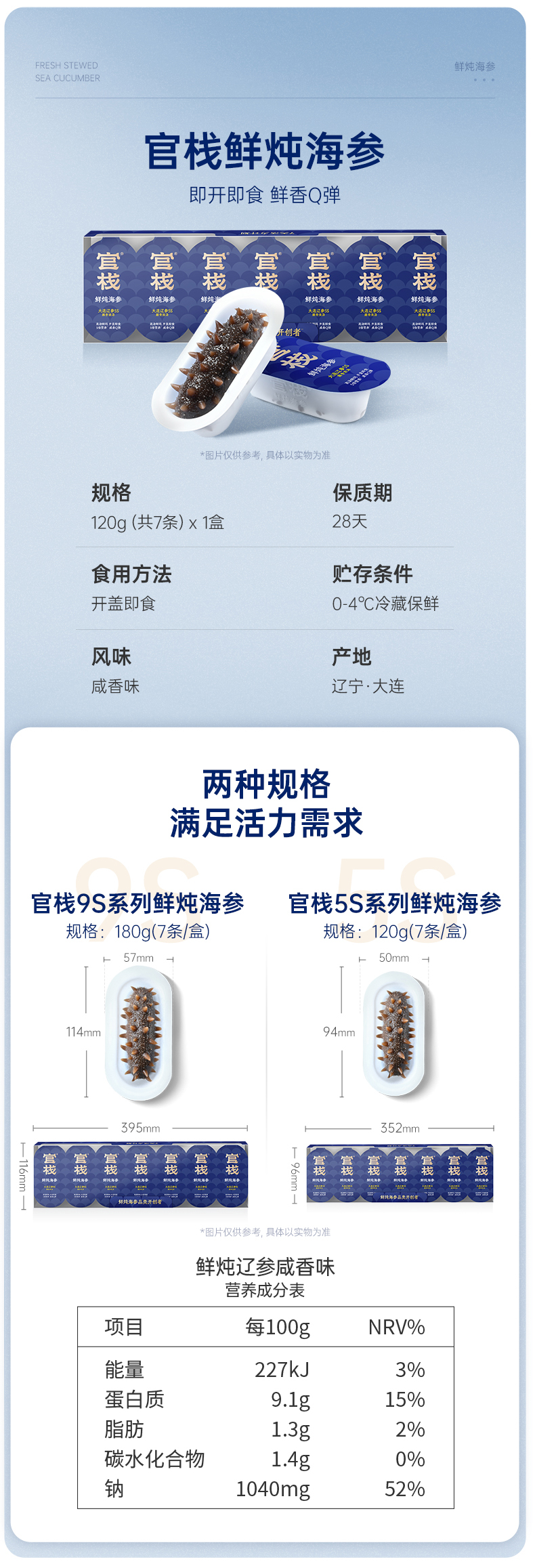 官栈 5S系列鲜炖海参120g(7条/盒)