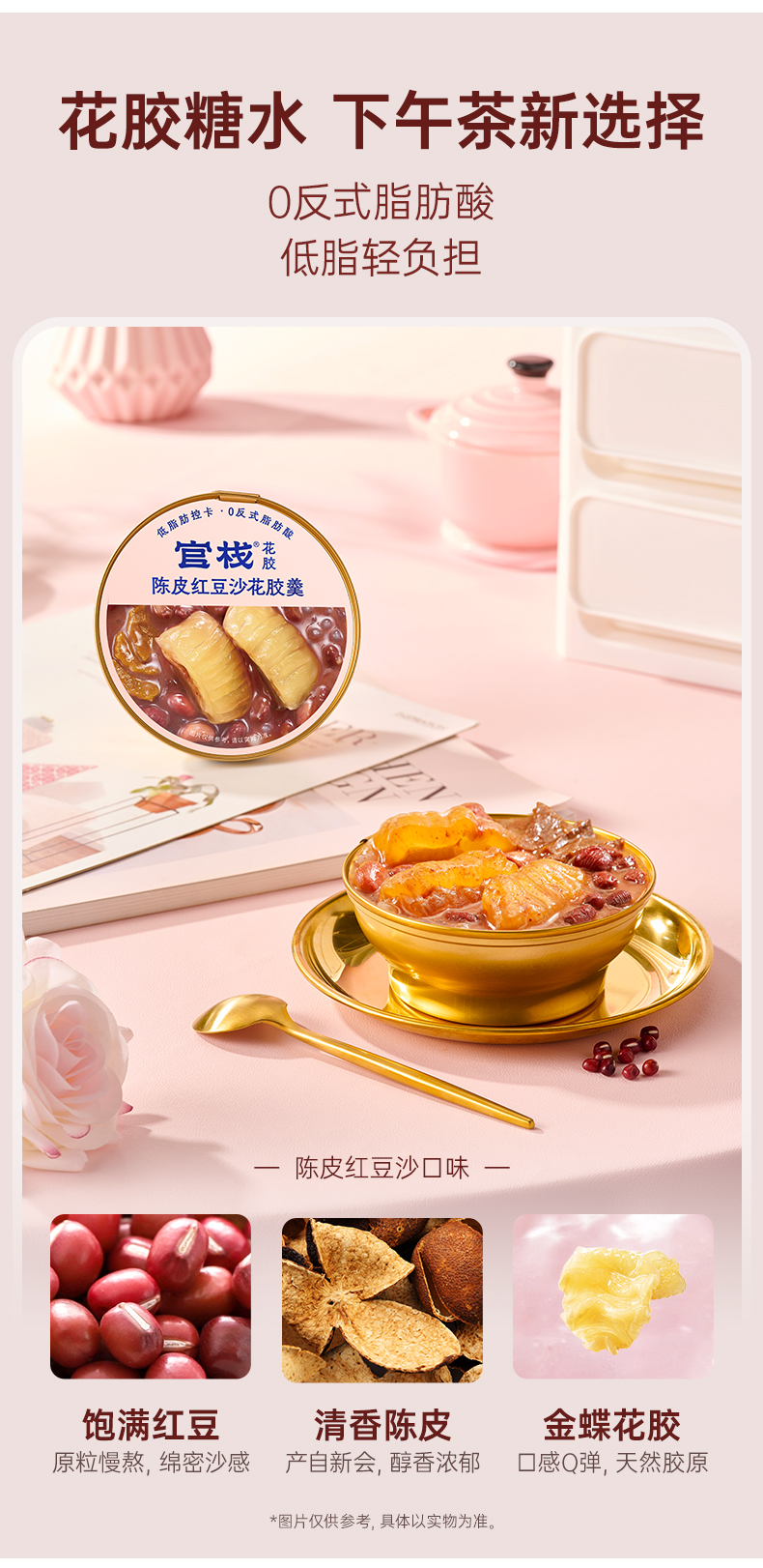 官栈金蝶胶港式陈皮红豆沙花胶羹158g*3碗装