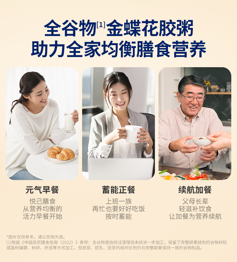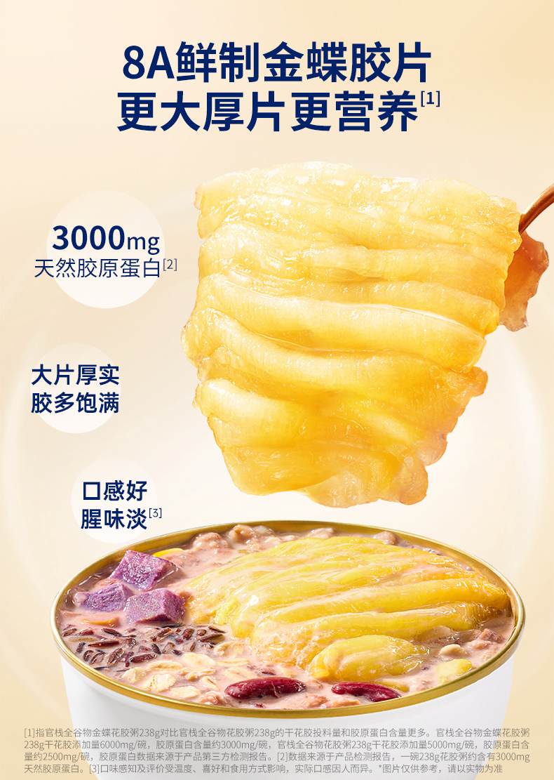 官栈金蝶胶全谷物紫薯燕麦花胶粥238g*3碗装