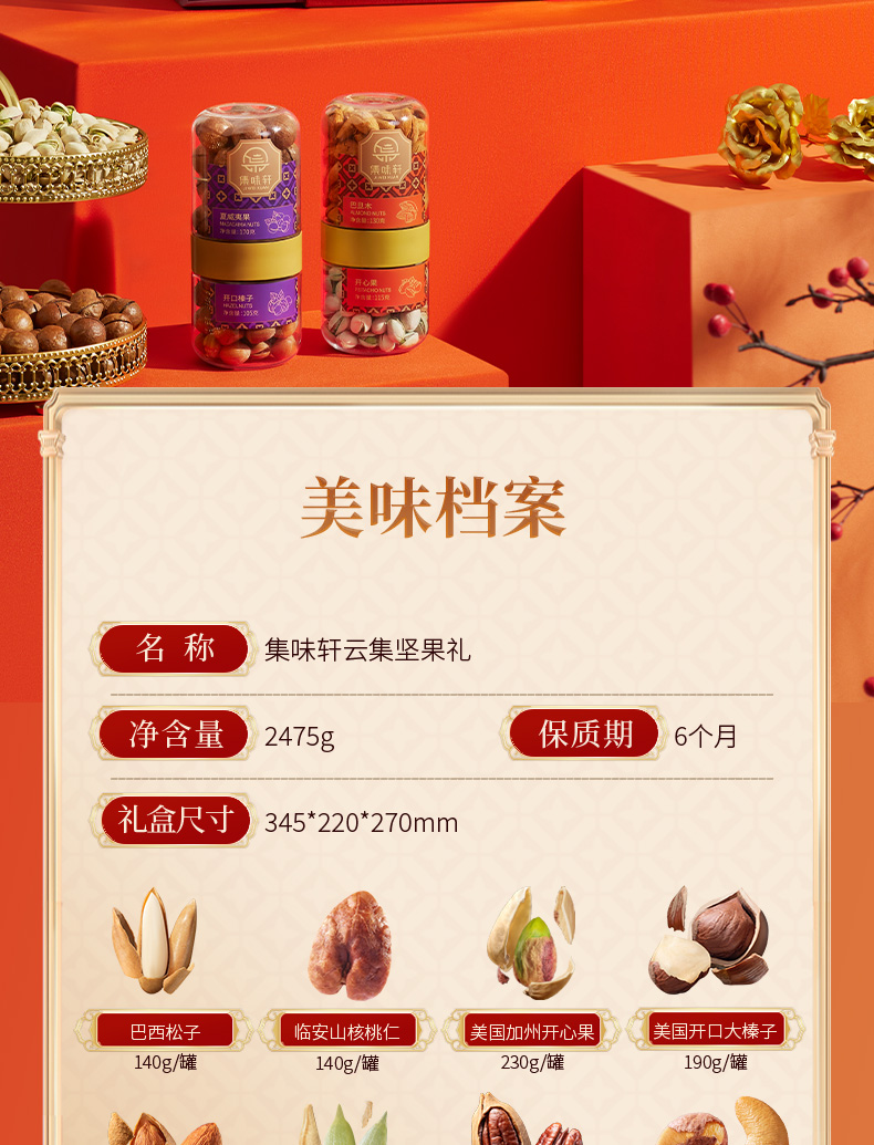 首页 > 坚果糕点休食 > 集味轩坚果礼盒 > 集味轩坚果云集坚果礼2.47kg