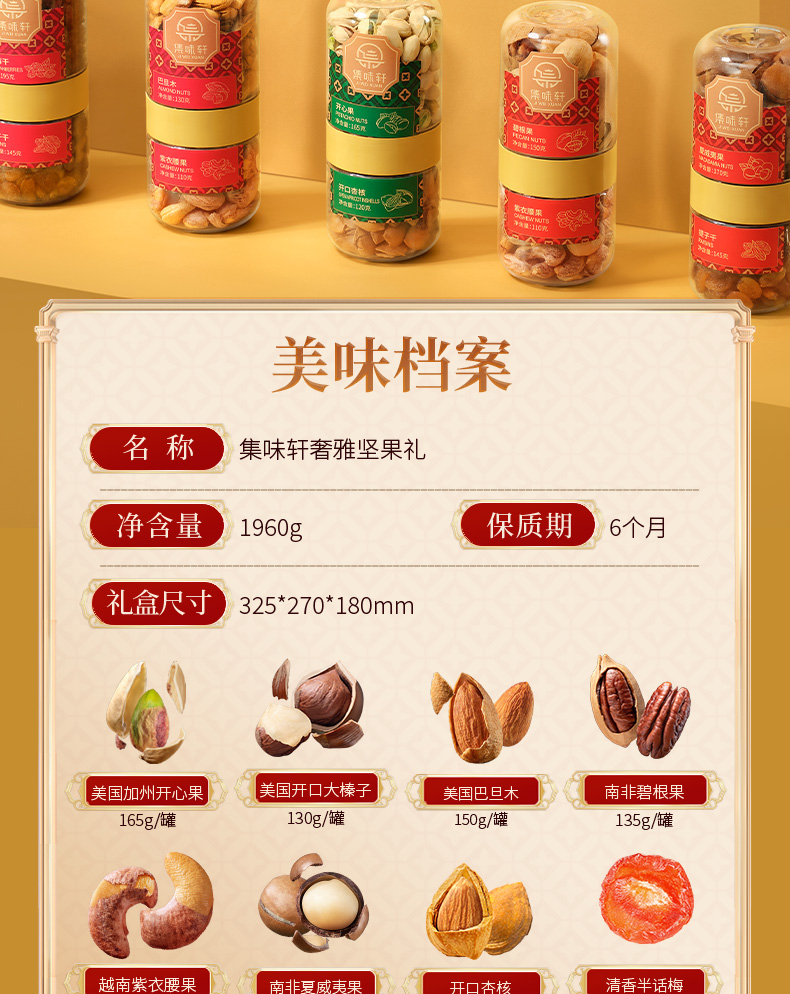 首页 > 坚果糕点休食 > 集味轩坚果礼盒 > 集味轩坚果奢雅坚果礼1.96kg