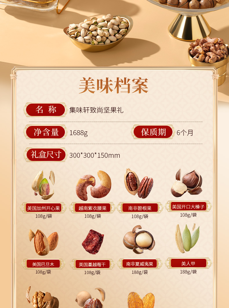 首页 > 坚果糕点休食 > 集味轩坚果礼盒 > 集味轩坚果致尚坚果礼1.68kg