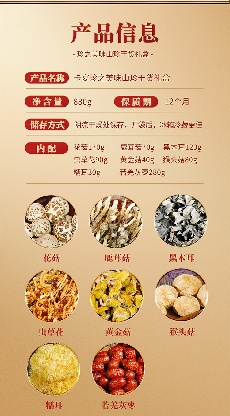 卡宴珍之美味山珍干货礼盒880g