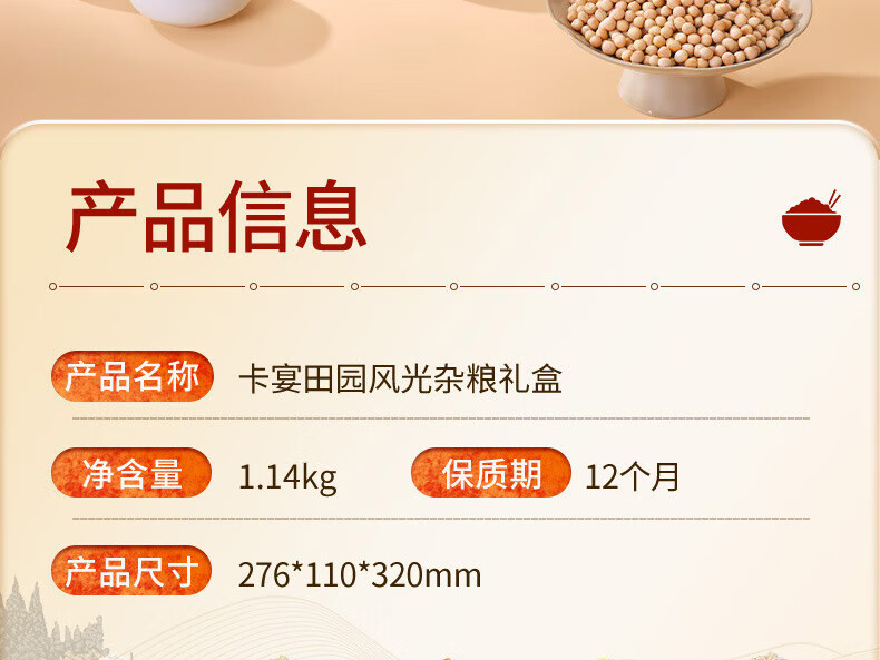 首页 > 粮油调味干货 > 卡宴杂粮大米 > 卡宴田园风光杂粮礼盒1140g