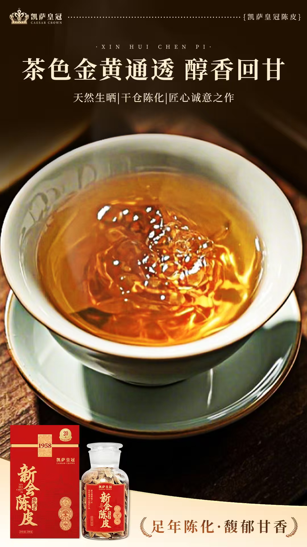 首页 > 茗茶酒水饮料 > 凯萨陈皮 > 新会梅江老树陈皮15年-天地盖•红色系列