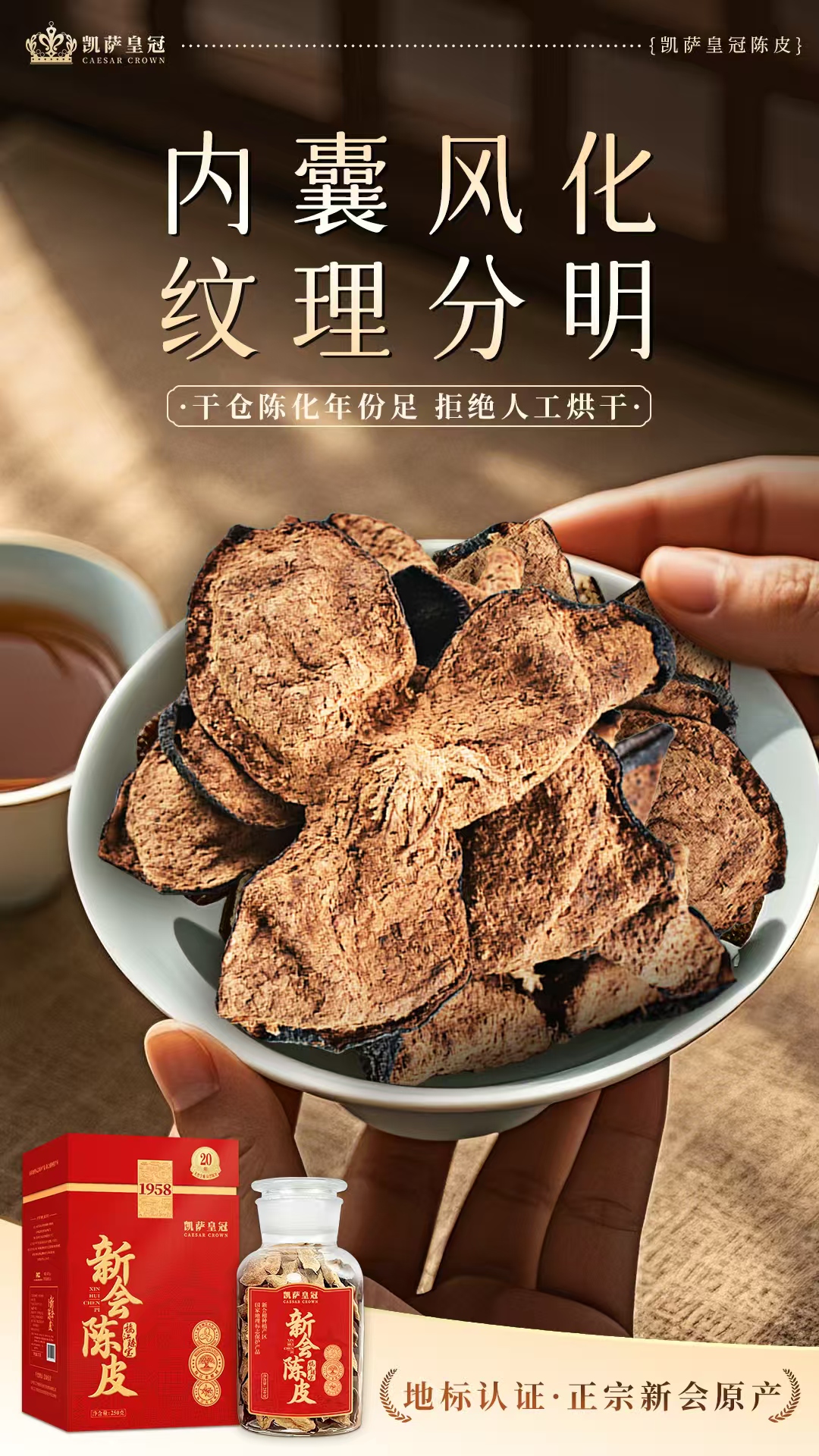 首页 > 茗茶酒水饮料 > 凯萨陈皮 > 新会梅江老树陈皮25年-天地盖•红色系列