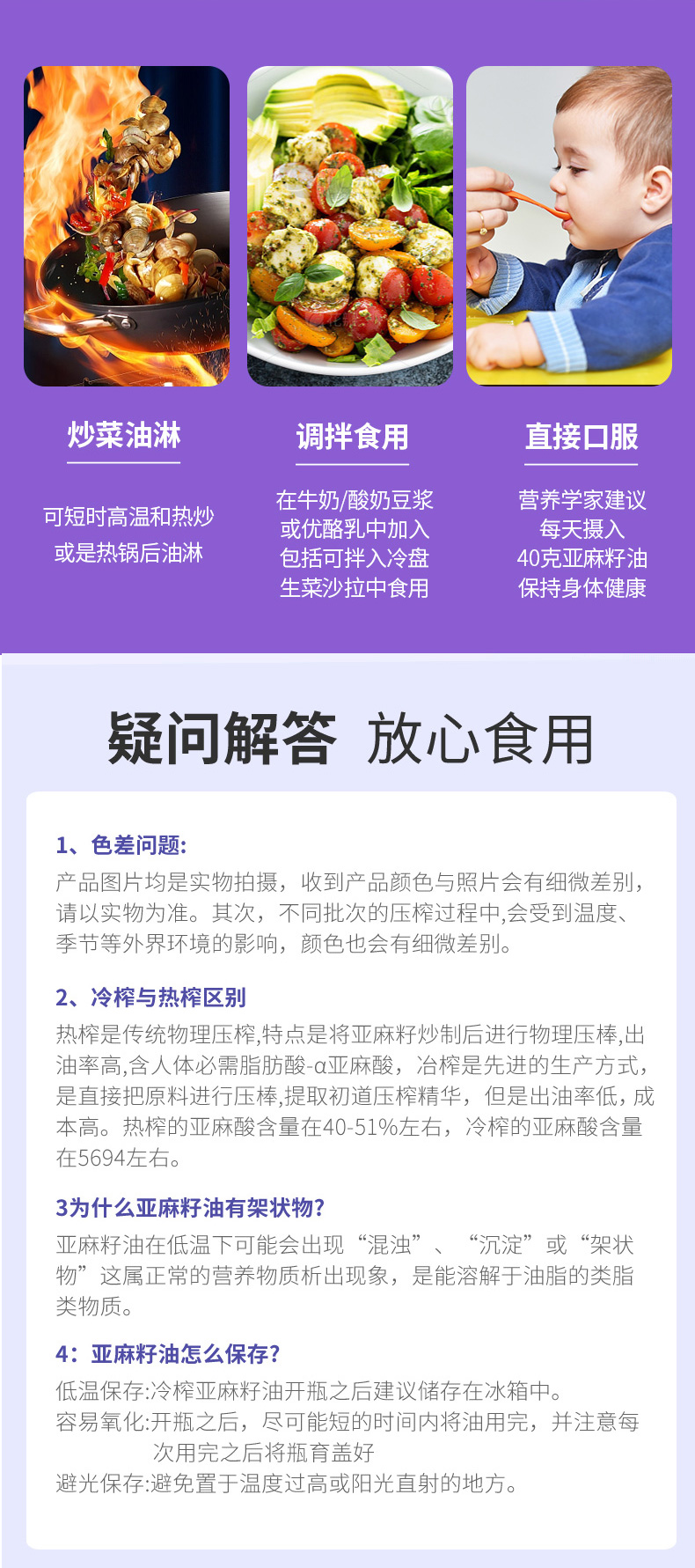 伊莎贝拉&食色家-百紫千红 冷榨一级亚麻籽油500ml*2