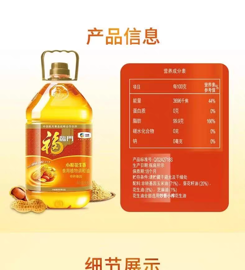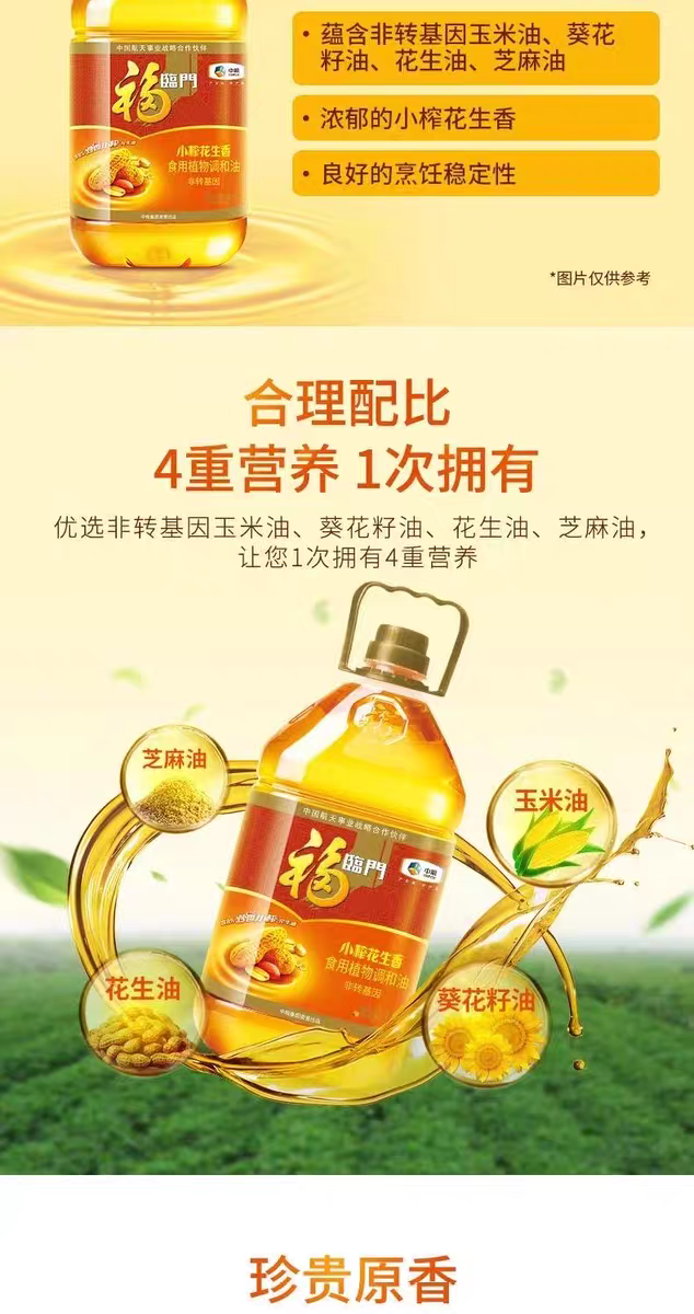 首页 > 粮油调味干货 > 米面油 > 福临门非转基因小榨花生香食用植物调和油5L