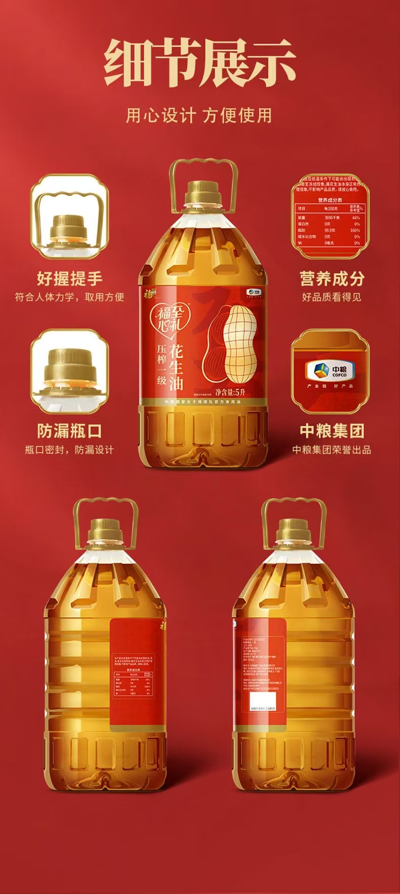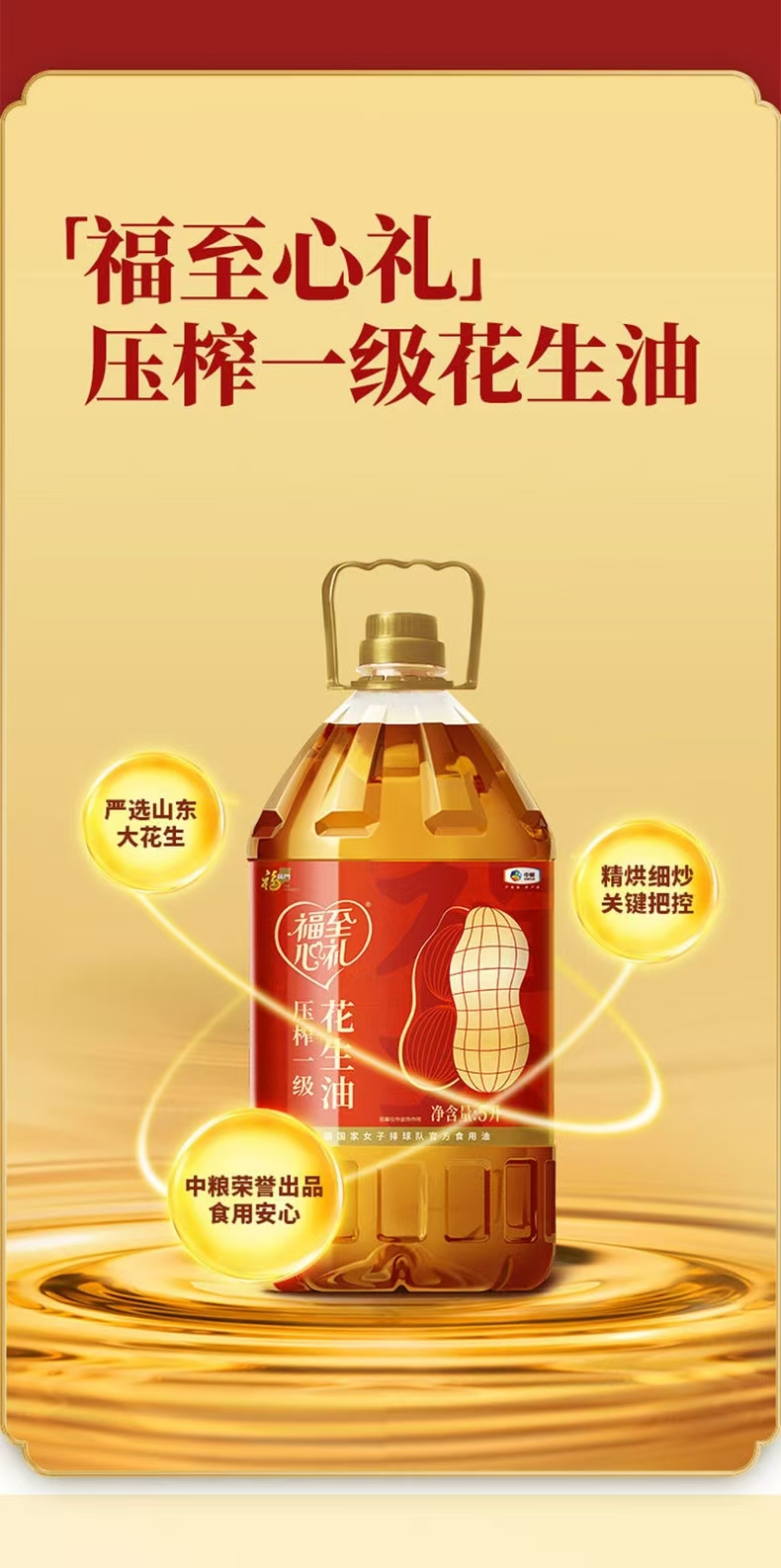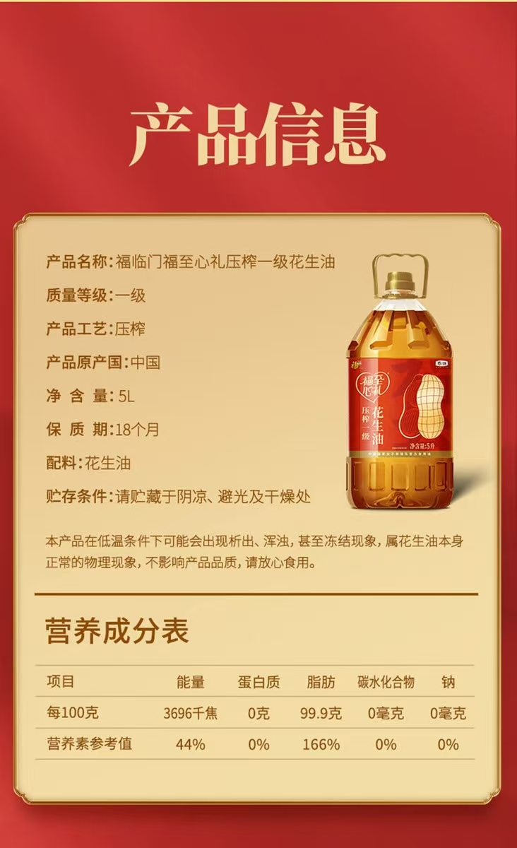 首页 > 粮油调味干货 > 米面油 > 福临门福至心礼压榨一级花生油5L