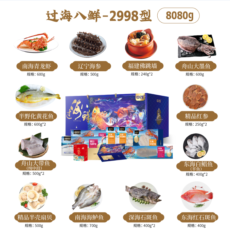 首页 > 生鲜熟食腊味 > 中茂海鲜礼盒 > 过海八鲜
