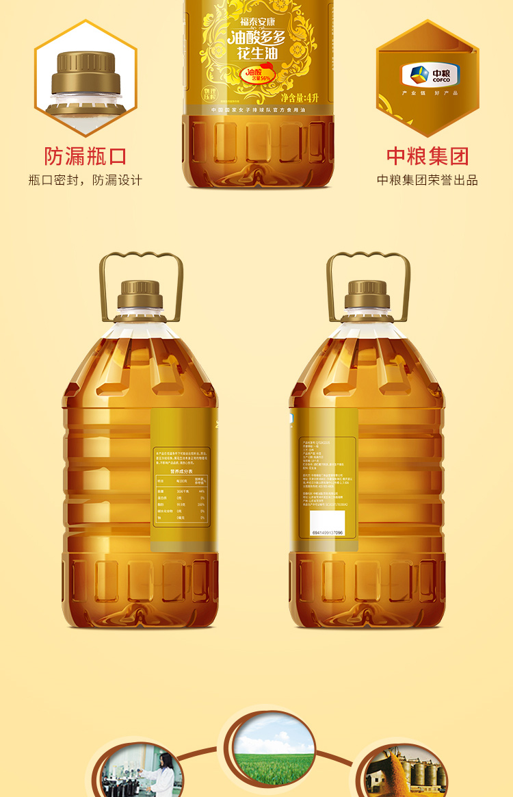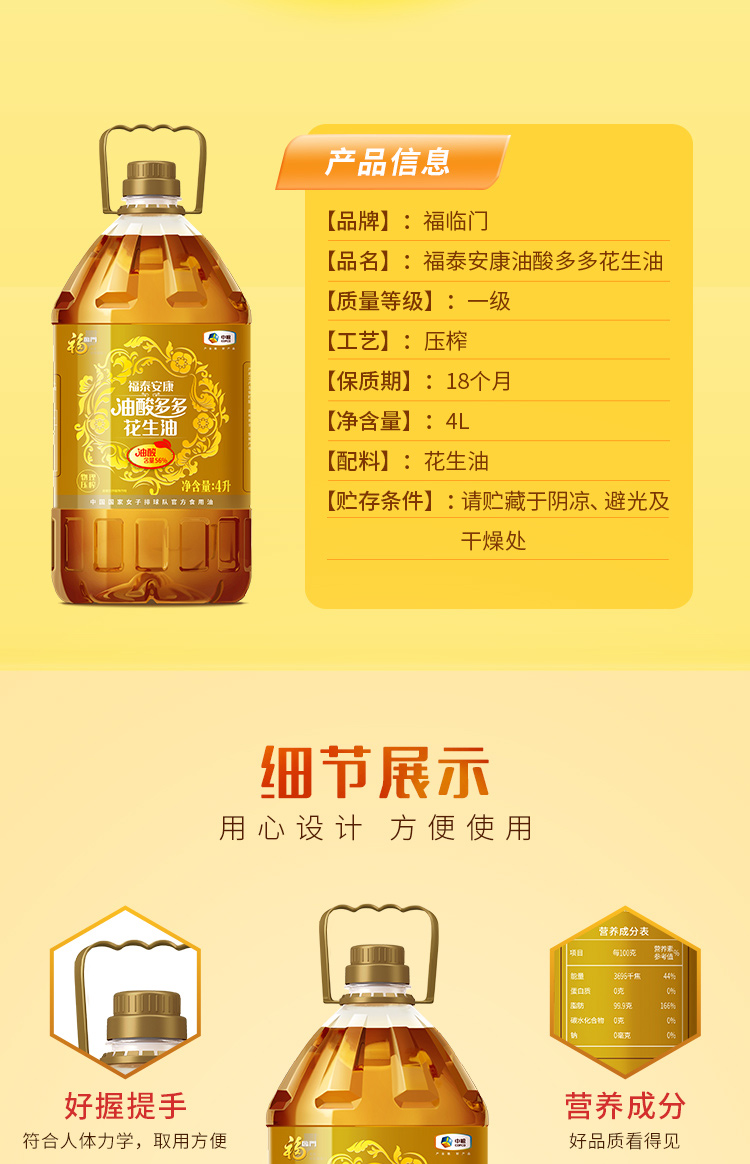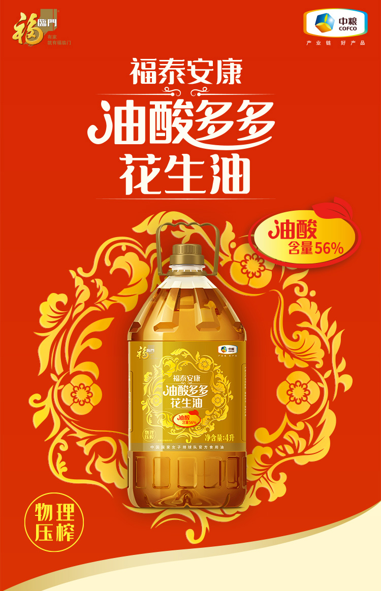 福临门福泰安康油酸多多花生油4L