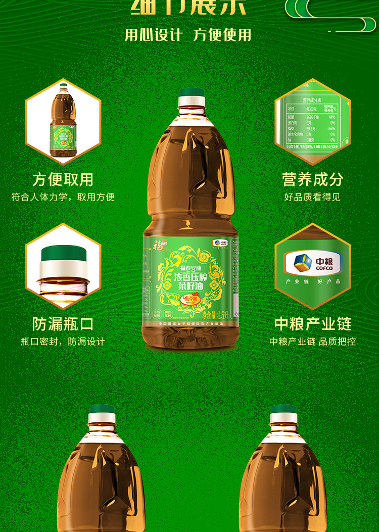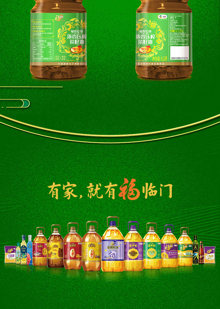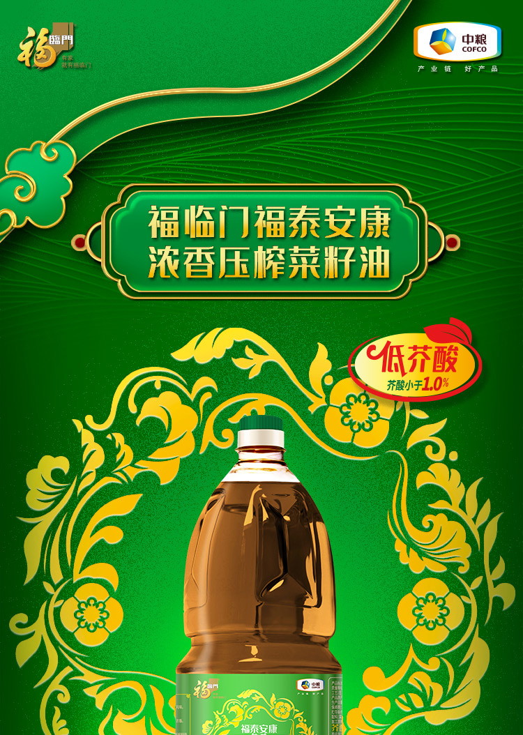 首页 > 粮油调味干货 > 福临门米面油 > 福临门福泰安康低芥酸浓香压榨菜籽油1.5L