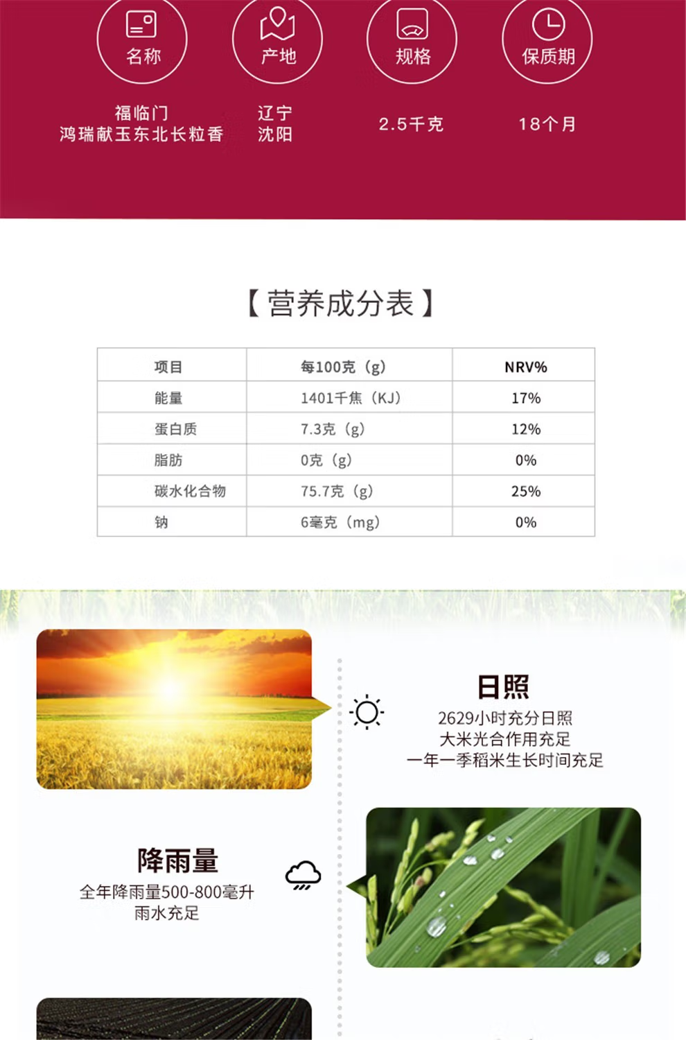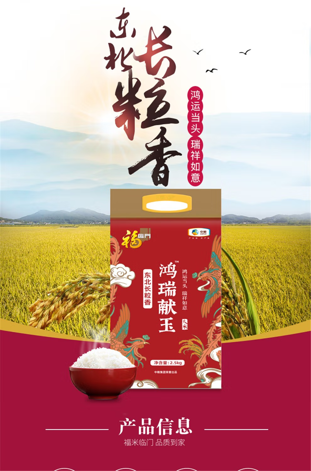 福临门鸿瑞献玉东北长粒香米2.5kg