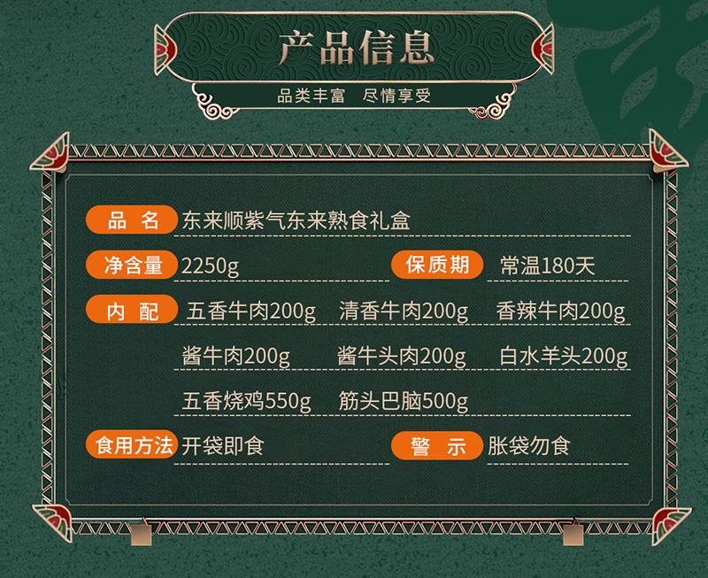 首页 > 生鲜熟食腊味 > 东来顺肉类 > 东来顺紫气东来熟食礼盒2250g(new)
