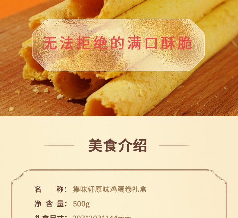 首页 > 坚果糕点休食 > 集味轩糕点礼盒 > 集味轩原味鸡蛋卷礼盒500g