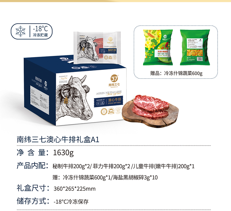 首页 > 生鲜熟食腊味 > 南纬三七牛排礼盒/配送券 > 南纬三七#澳心牛排A礼盒1630g
