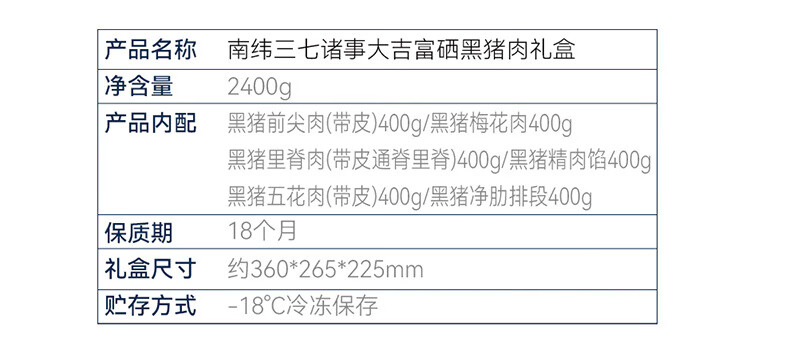 南纬三七诸事大吉富硒黑猪肉礼盒2400g