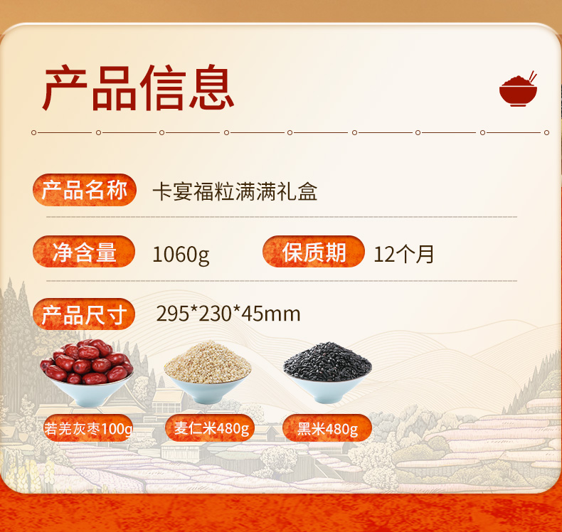 首页 > 粮油调味干货 > 卡宴杂粮大米 > 卡宴福粒满满礼盒1060g