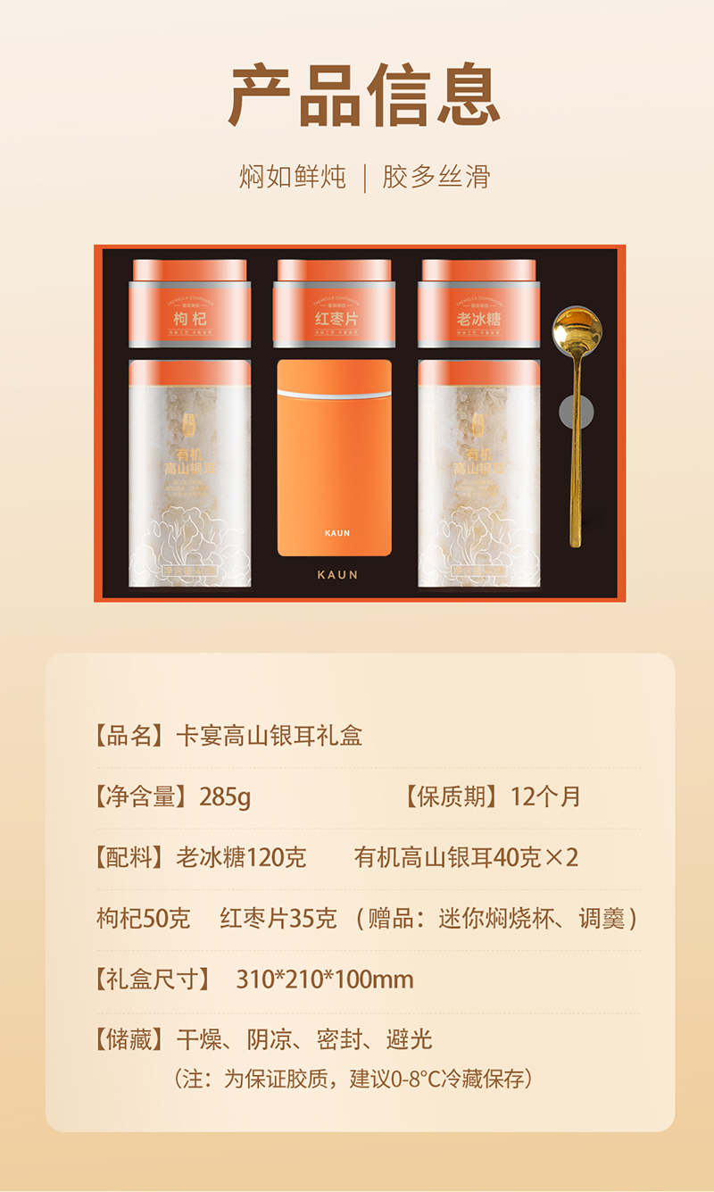 首页 > 滋补营养系列 > 卡宴高山银耳/燕窝礼盒 > 卡宴高山银耳礼盒285g