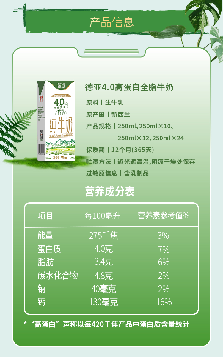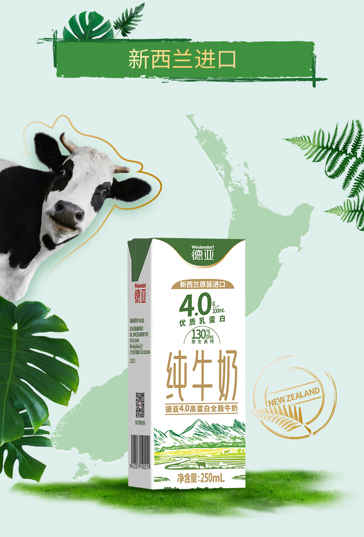 德亚4.0g新西兰进口高蛋白全脂纯牛奶礼盒250ml*12(梦想星空版)