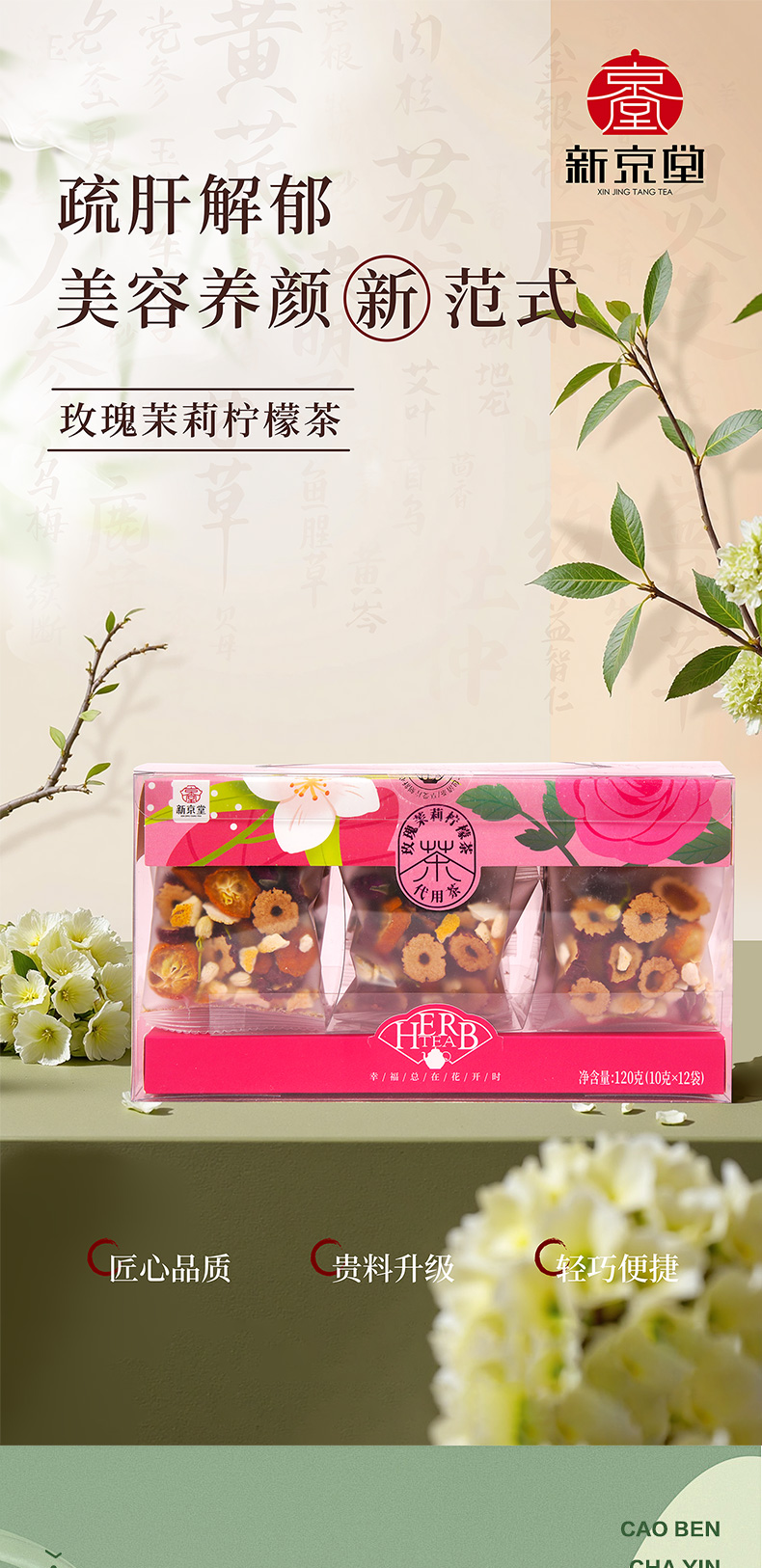 首页 > 茗茶酒水饮料 > 新京堂养生茶 > 新京堂玫瑰茉莉柠檬茶120g