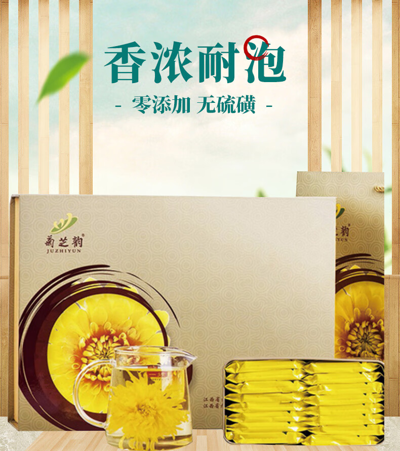 首页 > 茗茶酒水饮料 > 菊芝韵菊花礼盒 > 菊芝韵菊花茶贡品礼盒32朵57.6g
