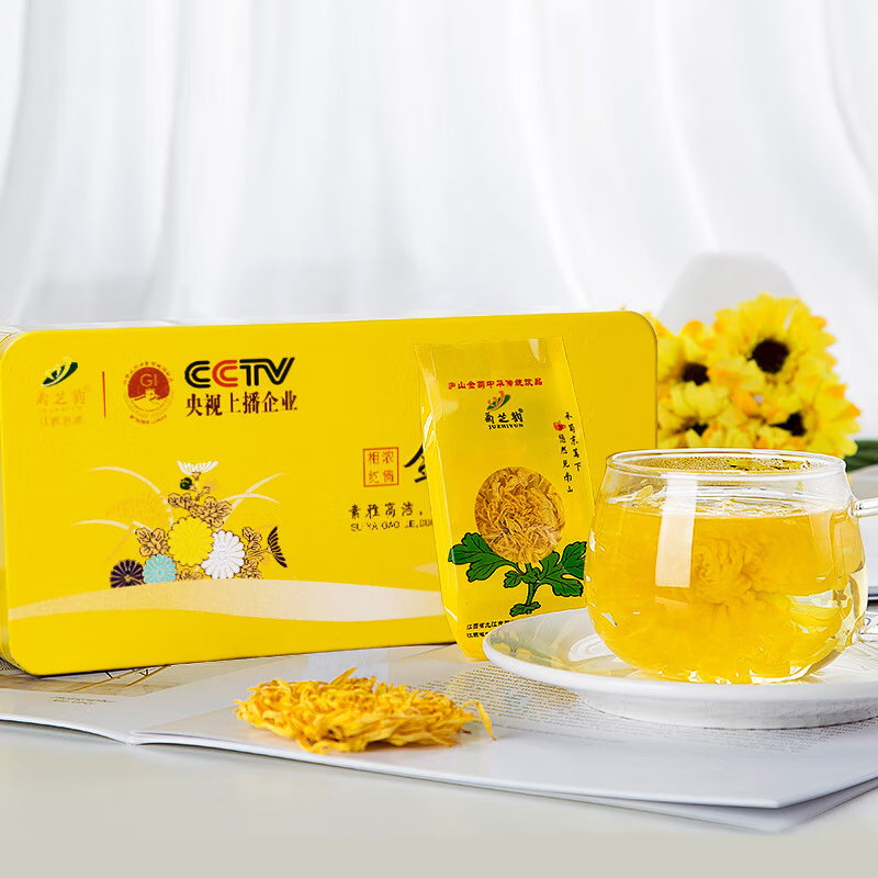 首页 > 茗茶酒水饮料 > 菊芝韵菊花礼盒 > 菊芝韵菊花茶黄色铁盒20朵装12g