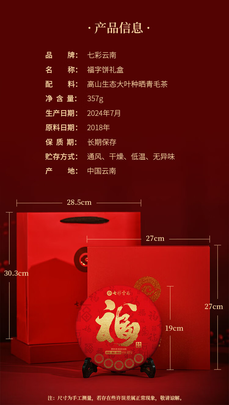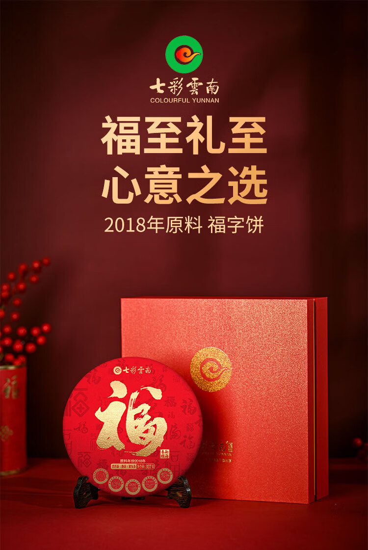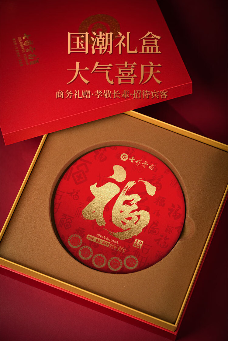 七彩云南普洱茶2018福字饼-红茶叶礼盒357g