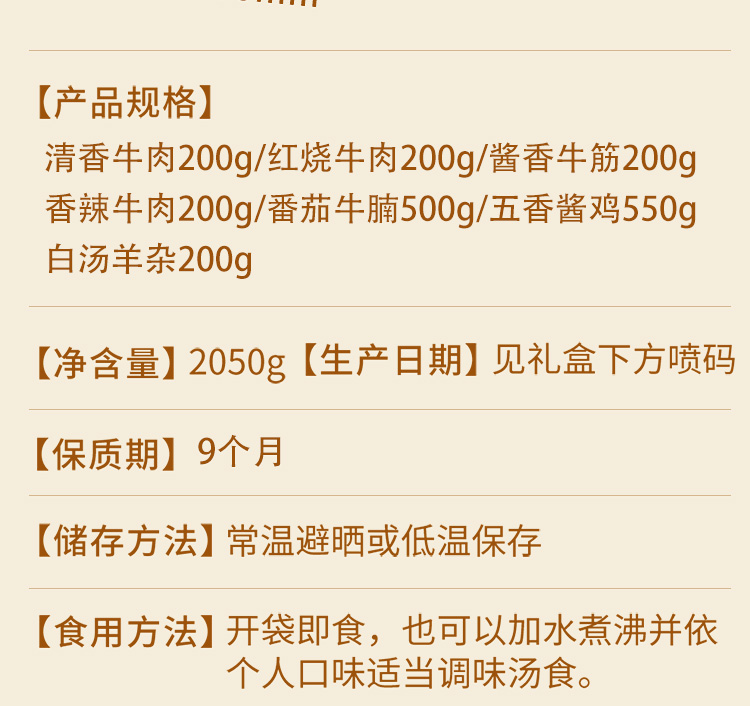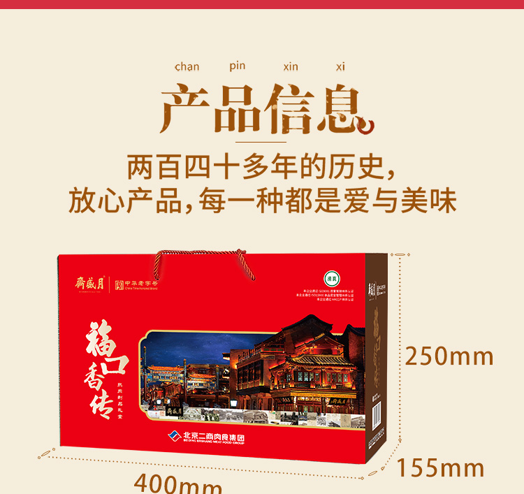 首页 > 生鲜熟食腊味 > 月盛斋清真熟食礼盒 > 月盛斋福口香传熟食礼盒2050g
